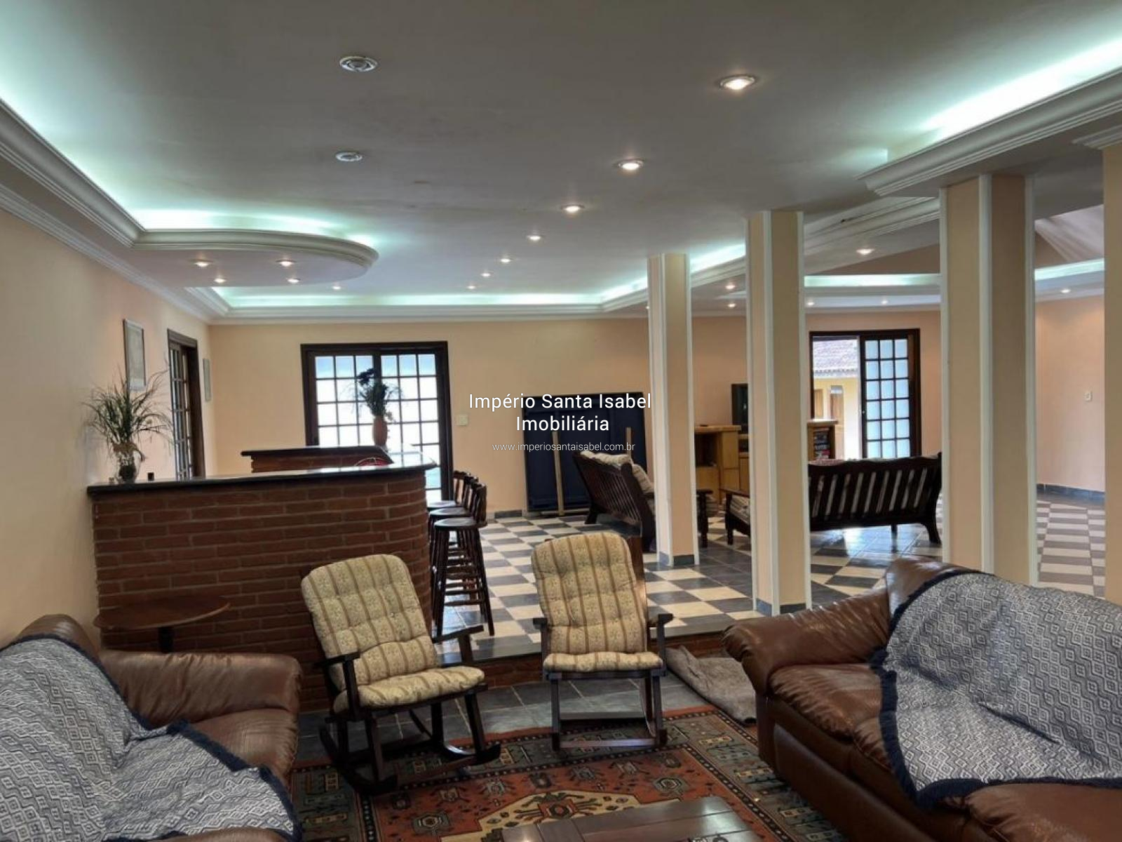 REF 1494 - R$1.060.000,00Rodovia Prefeito Joaquim Simão Km 68- CONDOMÍNIO MONT CLAIR – SANTA ISABEL - CEP: 07500-000 . D A/T: 2.000m² A/C: 500m² CHÁCARA Dependências: CASA PRINCIPAL:com 400m² de área construída - 4 suítes sendo uma máster com closet e banheira dupla no quarto, sala de lareira, sala de jogos com bar, sala de tv, sala de jantar, lavabo, cozinha em conceito aberto, despensa e lavanderia, mezanino com teto estilo catedral em madeira, vigas aparentes. Toda avarandada. ÁREA DE CHURRASQUEIRA: com forno de pizza, 2 vestiários, piscina adulto 8x4mt e infantil 2x2mts. CASA SECUNDÁRIA: com 2 quartos, banheiro, sala e cozinha abertas. ÁREA EXTERNA: Vasto pomar, horta, canil. Doc.: Escritura e matrícula Obs.: Aceita Financiamento Bancário Obs: Aceita Permuta por casa na região de Santo André e São Caetano; CONDOMINIO R$ 1000 - IPTU R$ 3.830,00 ANUAL.