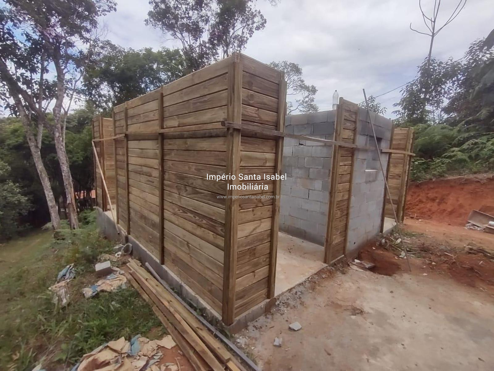 A Segunda casa está em construção. Tem 49m2 dois quartos, sala/cozinha e banheiro. Feita em madeira estilo colonial.