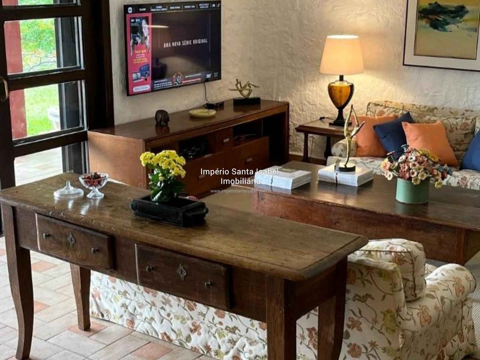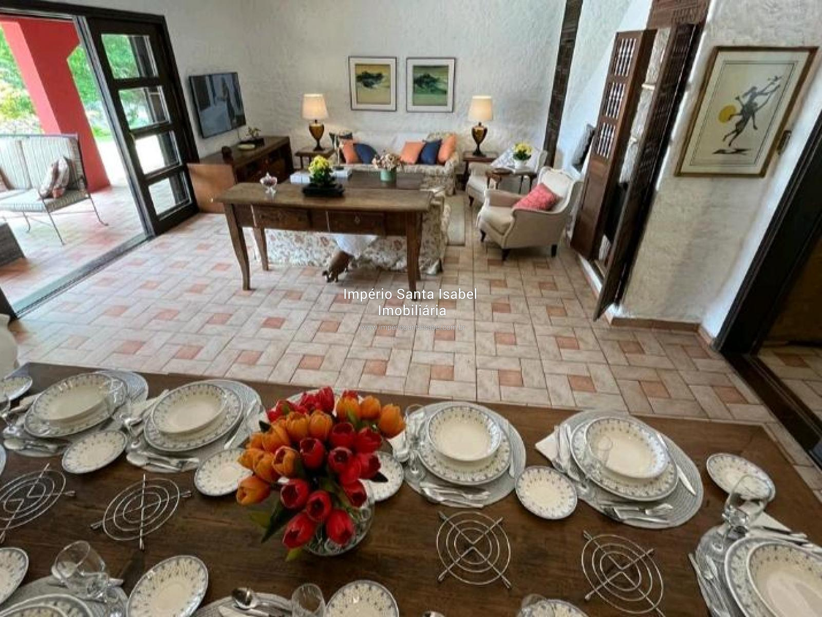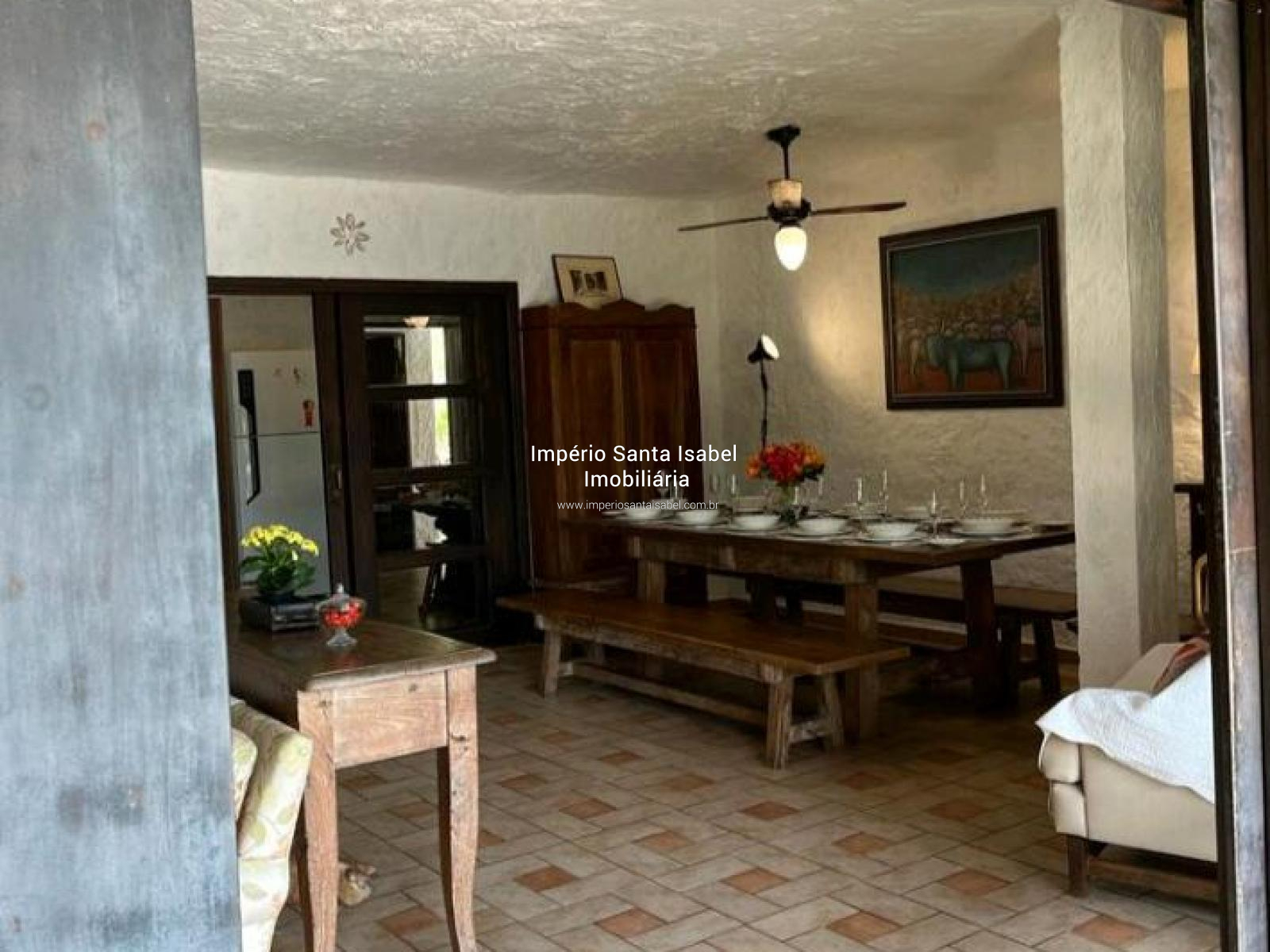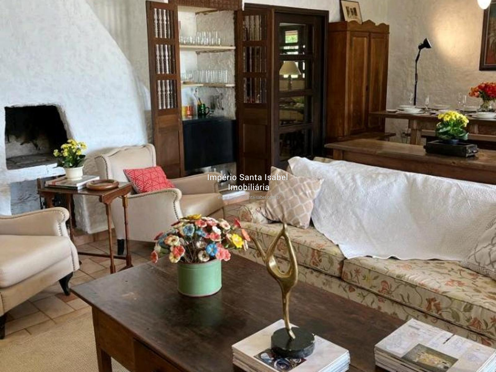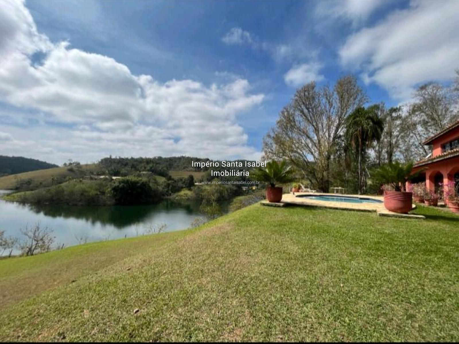 Propriedade c/ 114 mil m2 de área e 700 m2 de área construída, situada em uma península com uma vista incrível da represa. Documentação 100% Ok . O Sítio está localizado no município de Santa Isabel, a 55km de SP, próximo de Igaratá, a apenas 45 minutos de São Paulo e a 30 minutos do aeroporto de Guarulhos. É ideal para aqueles que gostam de privacidade (sem vizinhos por perto) belas paisagens, paz, conforto e as margens da represa, mas também para os que gostam de esportes aquáticos, barcos, jet-skis e de ficar na piscina. A propriedade, além de lazer, tem potencial para hotéis, pousadas, spas, marinas, restaurantes e espaços de eventos. A área é boa também para loteamentos de condomínios, hoje pode ser loteada em glebas de 7.500 mts se houver interesse. Propriedade: A casa principal com arquitetura italiana foi construída estrategicamente com vista para represa Jaguari com suas montanhas ao fundo. Possui 314m² de área interna construída com 4 suítes e mais 1 dormitório, sala de jantar, sala de estar com lareira, sala de TV, salão de jogos, copa, cozinha grande com fogão a lenha e muito arejada, área gourmet com churrasqueira e banheiro separados. A casa é circundada por terraços em toda sua extensão frontal. Os dormitórios/suites ficam nas 2 laterais do terraço com portas/janelas e vista direta para o ângulo mais bonito da vista. A piscina tem níveis diferentes. A casa de hóspedes possui 60m², 2 dormitórios e um banheiro e casa do caseiro igual. Possui também uma quadra de tênis/esportes em meio a um bosque com eucaliptos. Acesso direto à represa com rampa de concreto pela propriedade.