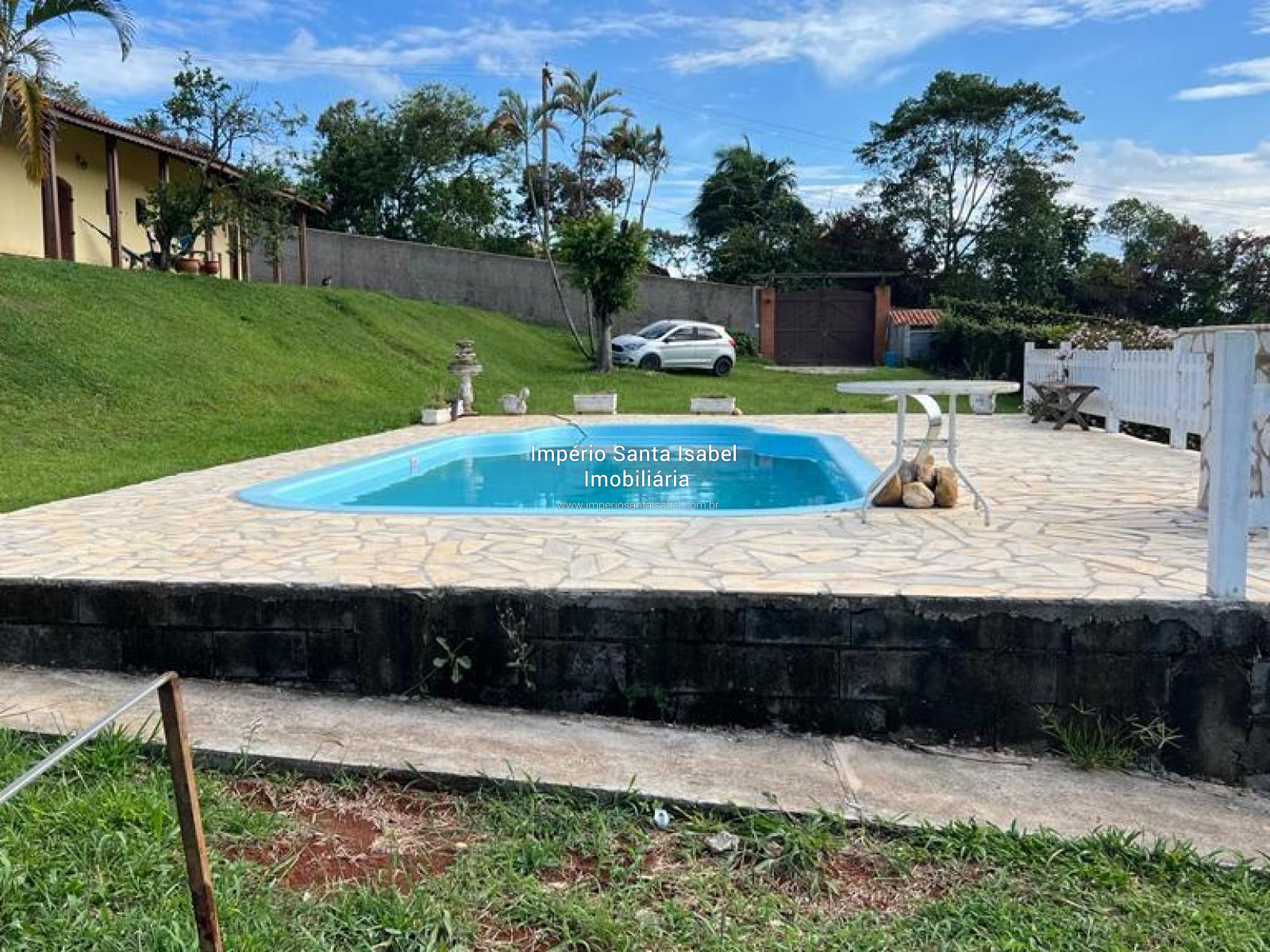 Área externa piscina nova de fibra com hidromassagem, rancho com churrasqueira, 2 banheiros masculino e 2 feminino, ambos com chuveiro